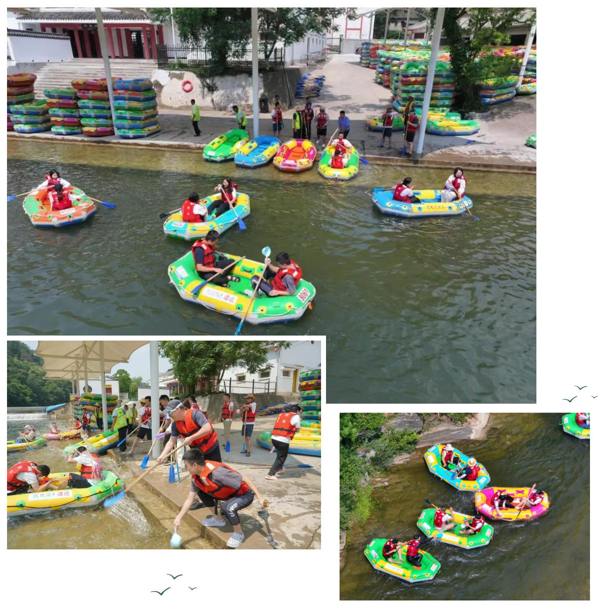 午后的鸳鸯溪漂流将气氛推向高潮。6.55 公里的河道蜿蜒曲折,时而平缓如镜,倒映着两岸青山;时而激流险滩,激起漫天水花。小伙伴们两两一组,紧握船桨,在 “九曲鸳鸯十里水画廊” 中奋勇向前。有人不慎 “湿身” 却笑出眼泪,有人默契配合勇闯险滩,尖叫声回荡在峡谷间 —— 这就是团队的力量,让挑战变成并肩作战的狂欢!