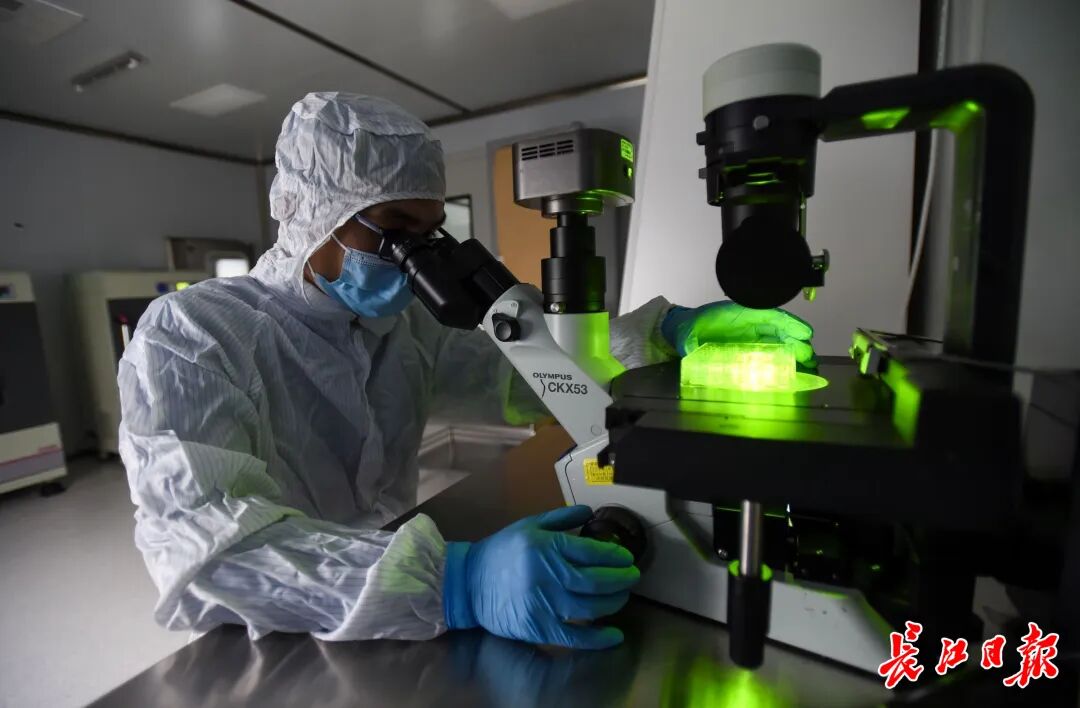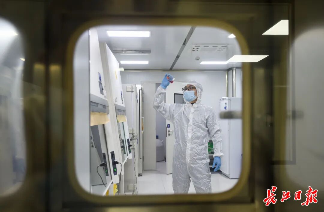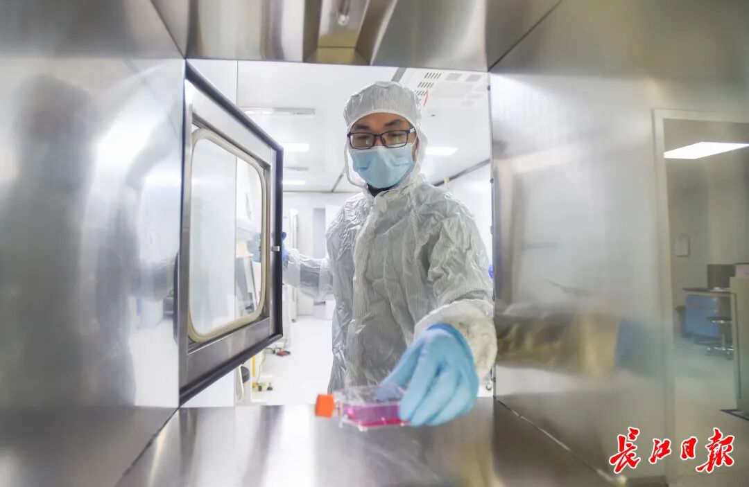▲研发工程师在昆虫杆状病毒表达系统研发试验中。长江日报记者许魏巍 摄