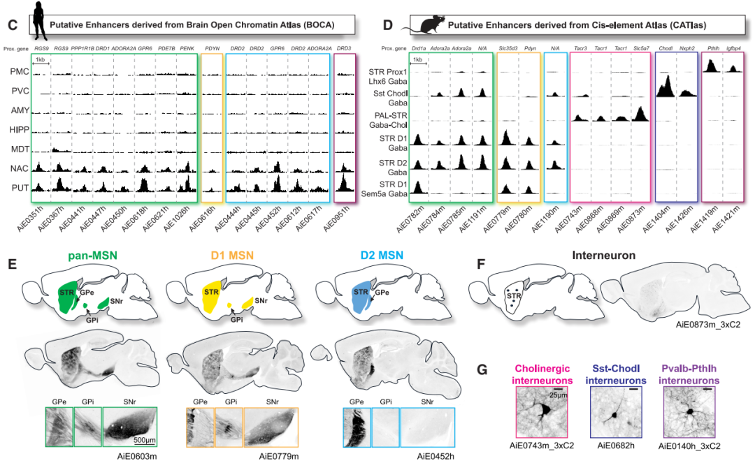 图2 假定增强子驱动纹状体细胞类型特异性表达