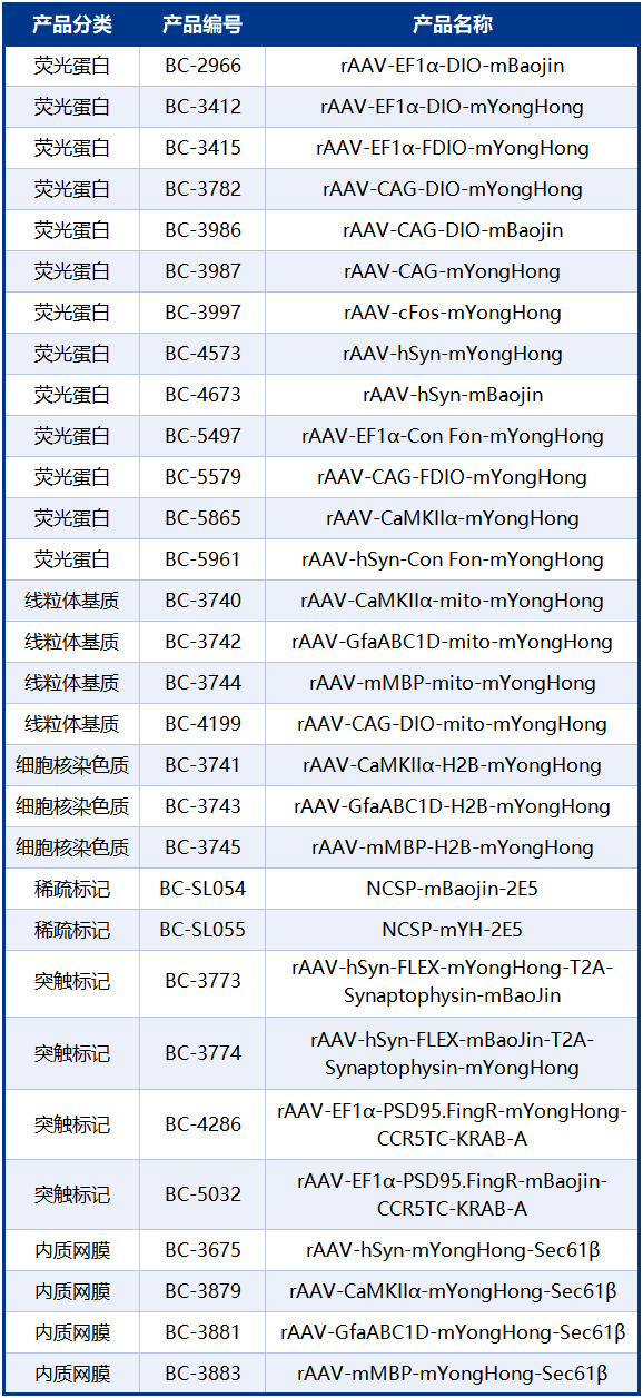 在细胞生物学、神经科学等前沿研究中,荧光标记的亮度、稳定性与特异性直接决定实验上限。布林凯斯生物技术有限公司深耕工具病毒领域多年,先后助力西湖大学生命科学院Kiryl Piatkevich团队及福建医科大学付志飞团队成果转化,并获得产品授权,现重磅推出基于两大顶刊级荧光蛋白(mBaoJin绿色荧光蛋白+mScarlet3-H红色荧光蛋白)的病毒载体产品,以“超稳性能+精准递送”双buff,彻底打破传统成像局限,为科研人员提供更强大的可视化工具!
