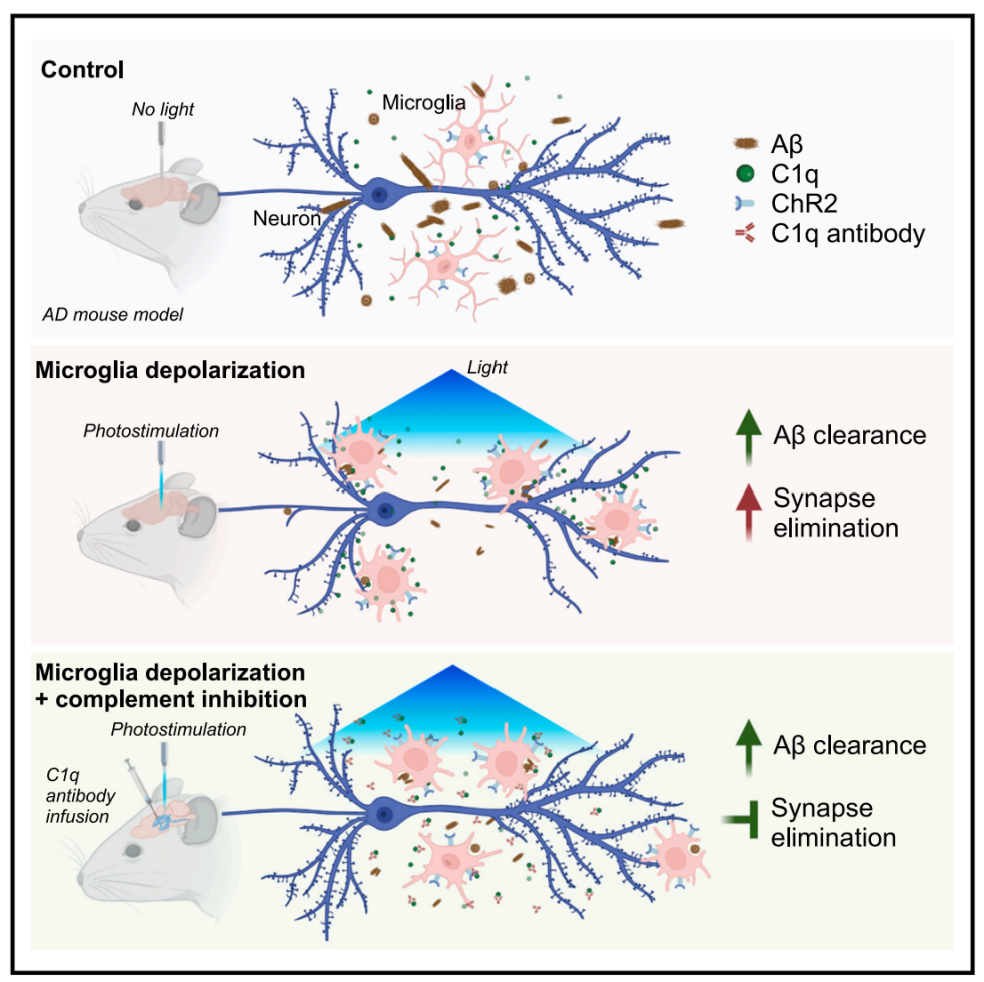 Clearance of b-amyloid and synapses by the optogenetic depolarization of microglia is complement selective (2024.01.31)