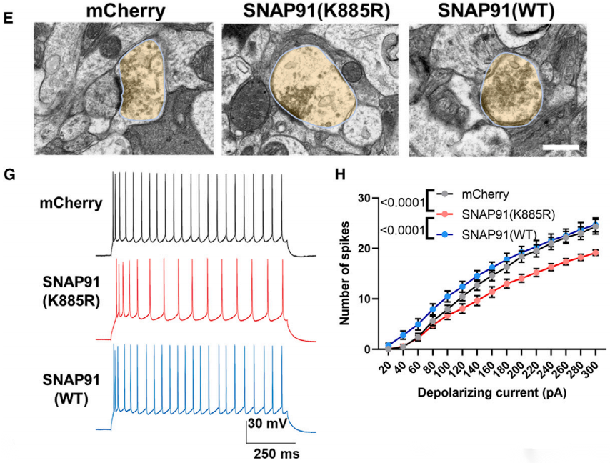 研究指出,SNAP91的乳酸化对于维持大脑皮层活动和应对压力的能力至关重要。通过遗传修饰实验,研究者们发现,当SNAP91的乳酸化位点发生突变时(例如,SNAP91-K885R突变),会导致突触结构和功能的损害,这表明乳酸化对于SNAP91的正常功能是必要的。