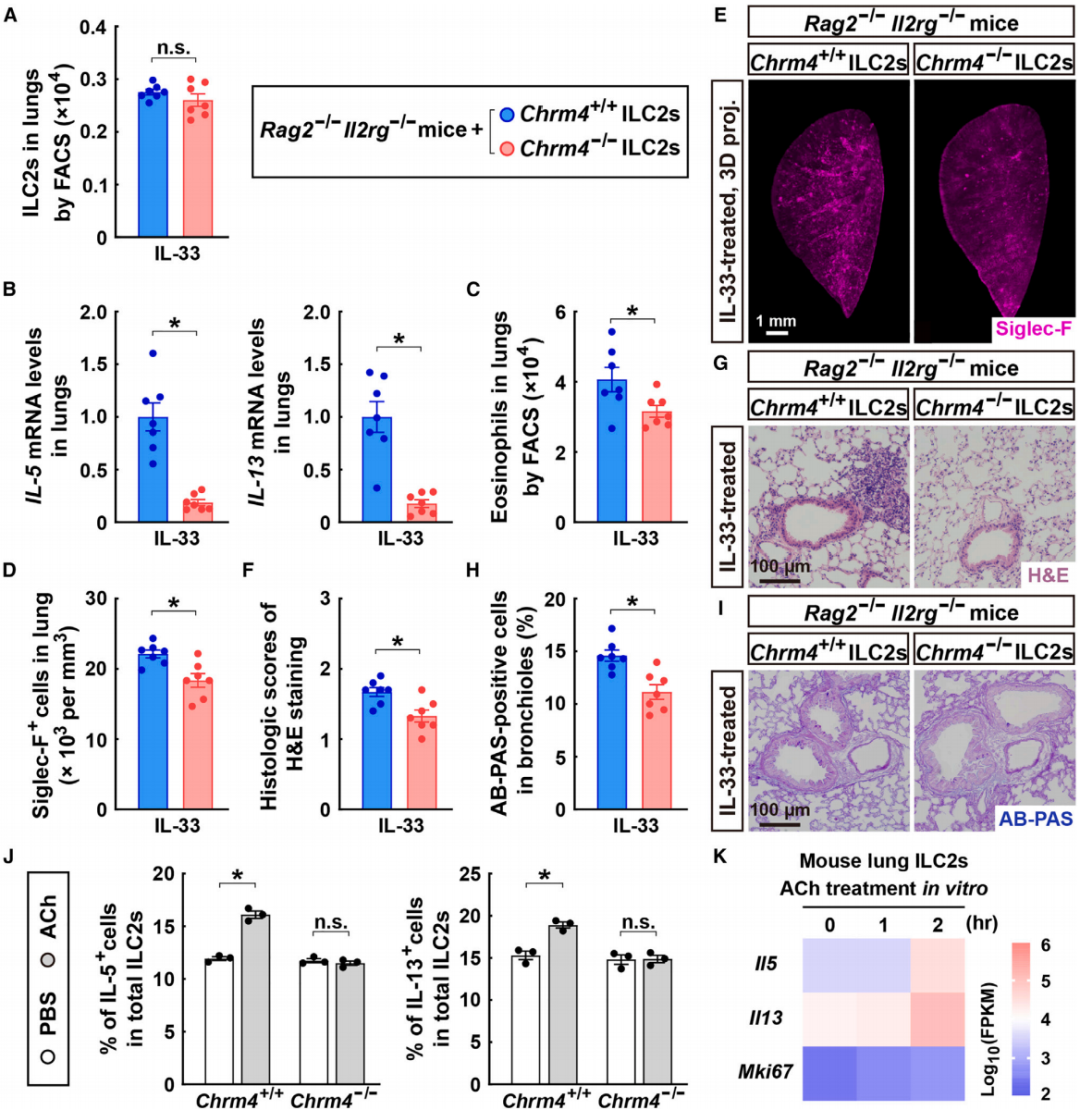 图7 在Chrm4促进肺部2型免疫应答中ILC2的特异性功能