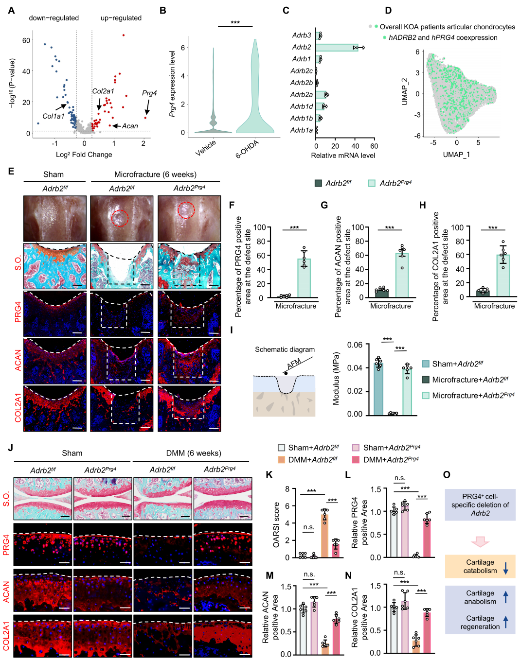 图 4. Prg4⁺细胞中条件性敲除Adrb2基因调控软骨再生