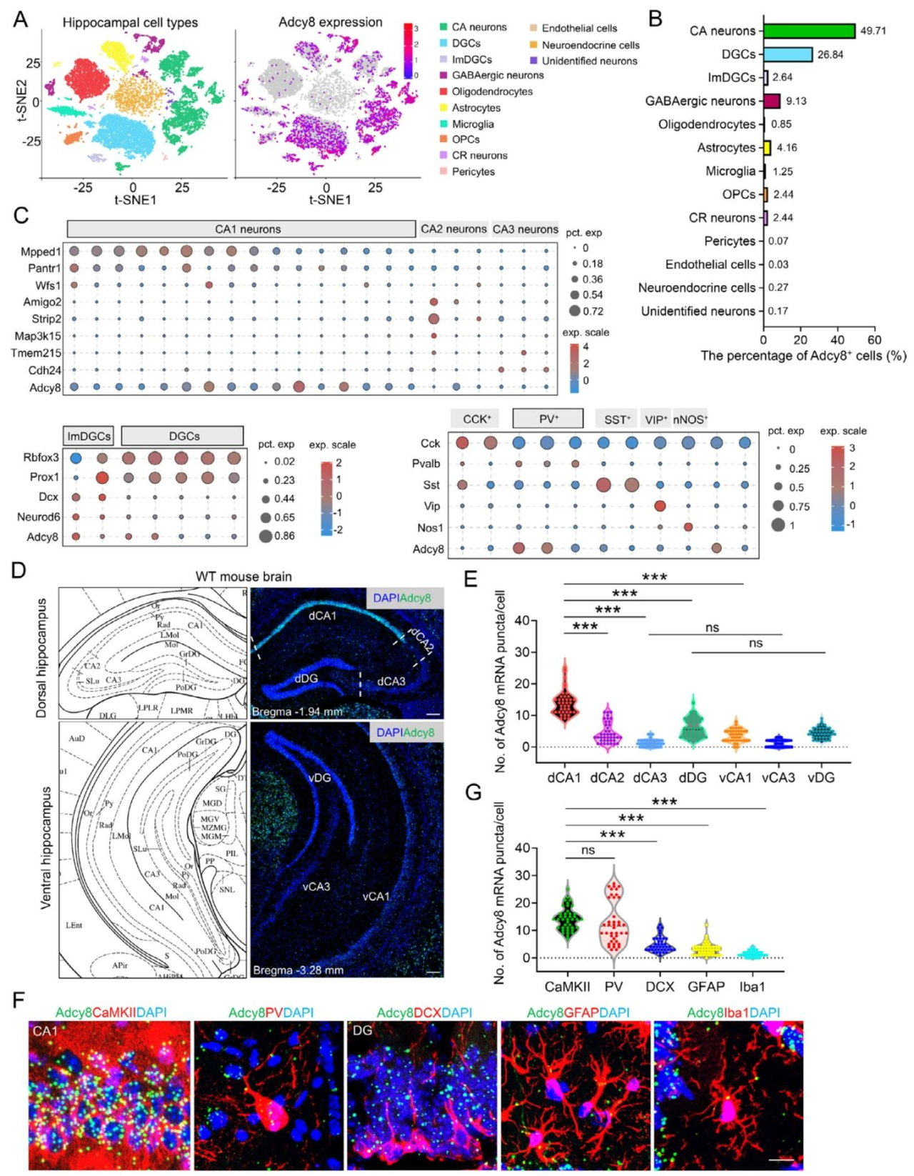 图2 Adcy8在海马dCA1神经元中高表达