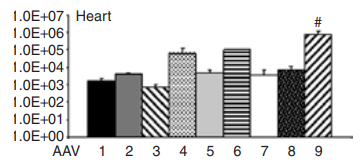 AAV血清型AAV-1、AAV-6、AAV-8和AAV-9可以有效地穿过内皮屏障。在体心脏研究中,AAV9和AAV8血清型对心脏的感染效率要优于其他血清型,且以AAV9型居多。