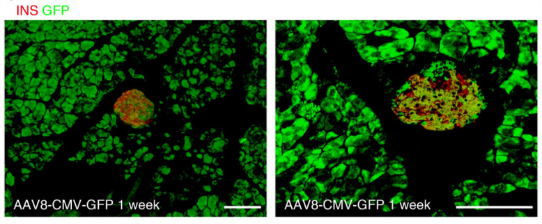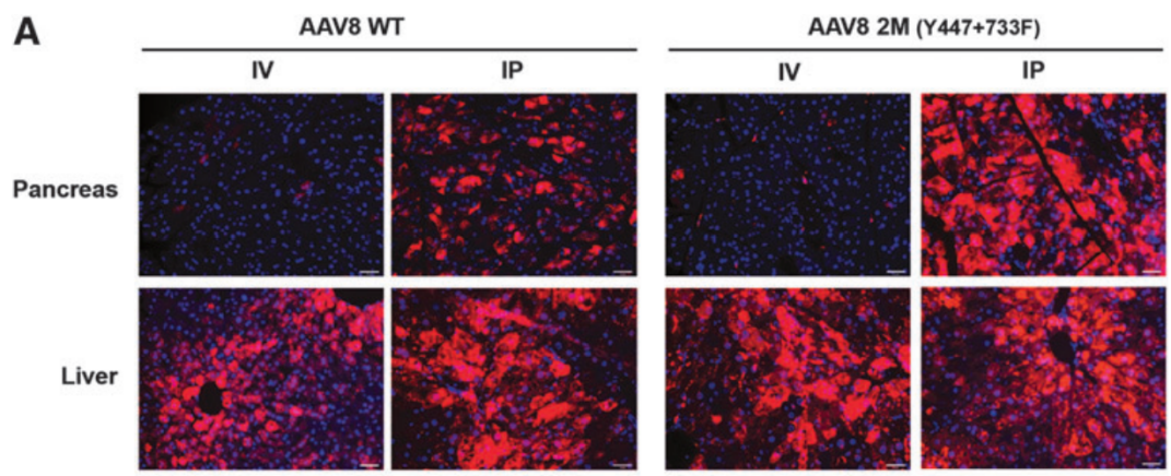 目前常使用AAV8、Y447F+Y733F-AAV8感染胰腺。