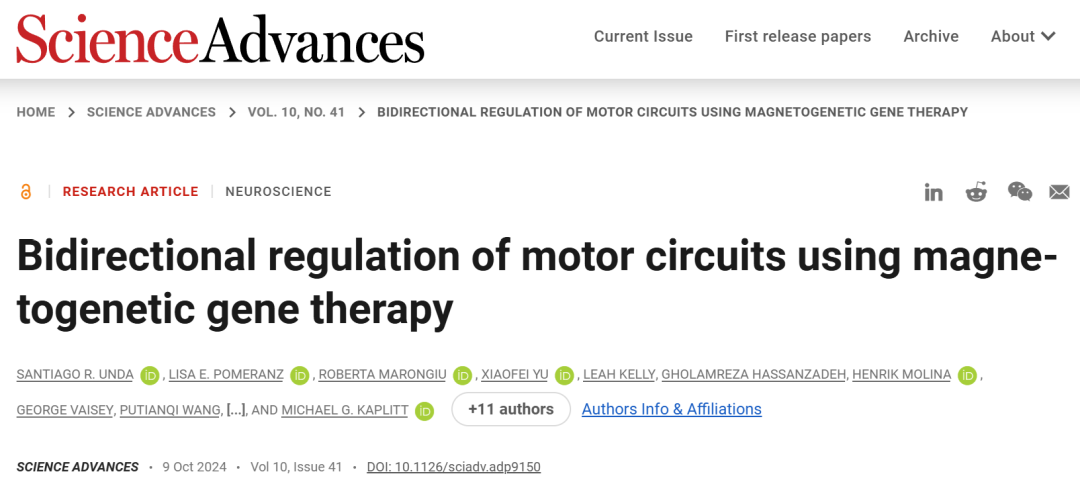 神经调控技术已经成为研究动物行为和治疗人类神经疾病的有力工具。传统的深脑刺激(DBS)需要植入电极,而光遗传学和化学遗传学虽然提供了更精确的控制,但它们要么需要植入光纤,要么依赖于药物扩散,这些都限制了它们的应用。康奈尔大学威尔康奈尔医学院Unda等人在《Science Advances》杂志上发表了题为“Bidirectional regulation of motor circuits using magnetogenetic gene therapy”研究论文,介绍了一种基于磁遗传学的系统,能够通过磁场非侵入性地调控特定神经回路的活动。磁遗传系统是基于单抗铁蛋白纳米体-TRPV1受体融合蛋白设计的,当这种融合蛋白暴露于磁场中时,能够调节神经元活动。通过腺相关病毒(AAV)将这种融合蛋白传递到小鼠的纹状体,研究者们能够在磁共振成像(MRI)机器或经颅磁刺激(TMS)设备附近引发运动冻结行为。