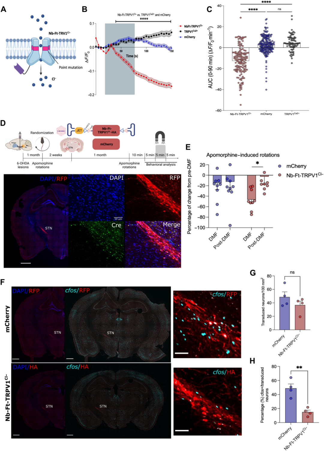 图3 突变型Nb-Ft-TRPV1Cl−抑制STN投射神经元的神经活动,并在帕金森小鼠中恢复运动功能障碍
