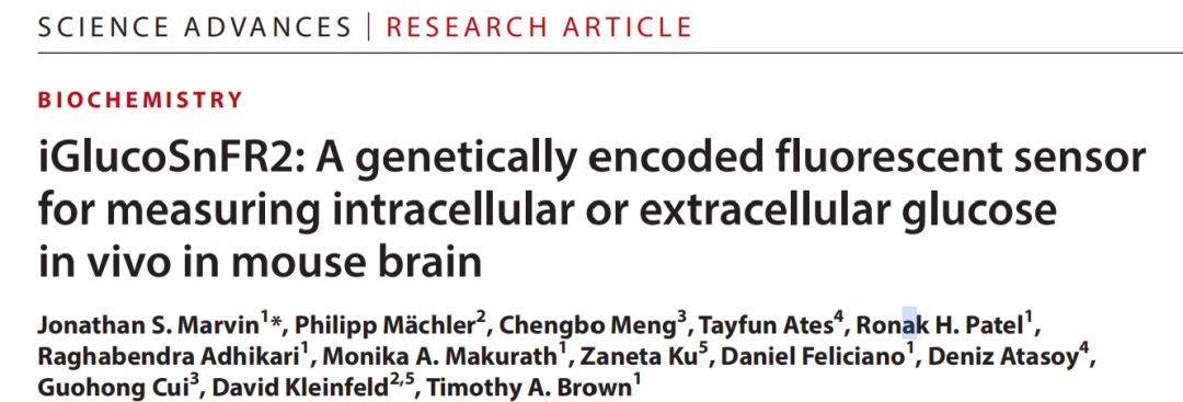 2025 年 11 月 12 日,发表于《Science Advances》上题为“iGlucoSnFR2: A genetically encoded fluorescent sensor for measuring intracellular or extracellular glucose in vivo in mouse brain”的文章,开发了第二代基因编码荧光葡萄糖探针iGlucoSnFR2,其通过将iGlucoSnFR1的环形排列增强型绿色荧光蛋白(cpeGFP)替换为环形排列超折叠绿色荧光蛋白(cpSFGFP)、优化小鼠密码子提高体内表达量等改造,具备更高的荧光变化幅度(∆F/F接近5)、更适配的葡萄糖结合亲和力(解离常数Kd约500 μM)及更优的亚细胞定位效率;该探针可靶向细胞质、细胞膜和内质网(ER),在细胞培养中能监测葡萄糖消耗、糖异生及ER葡萄糖外流,在小鼠体内通过光纤记录等技术,可实时检测脑内胞内/胞外葡萄糖动态,还能通过校准实现清醒小鼠脑内胞外葡萄糖绝对浓度测量,为哺乳动物葡萄糖代谢研究提供高时空分辨率工具。