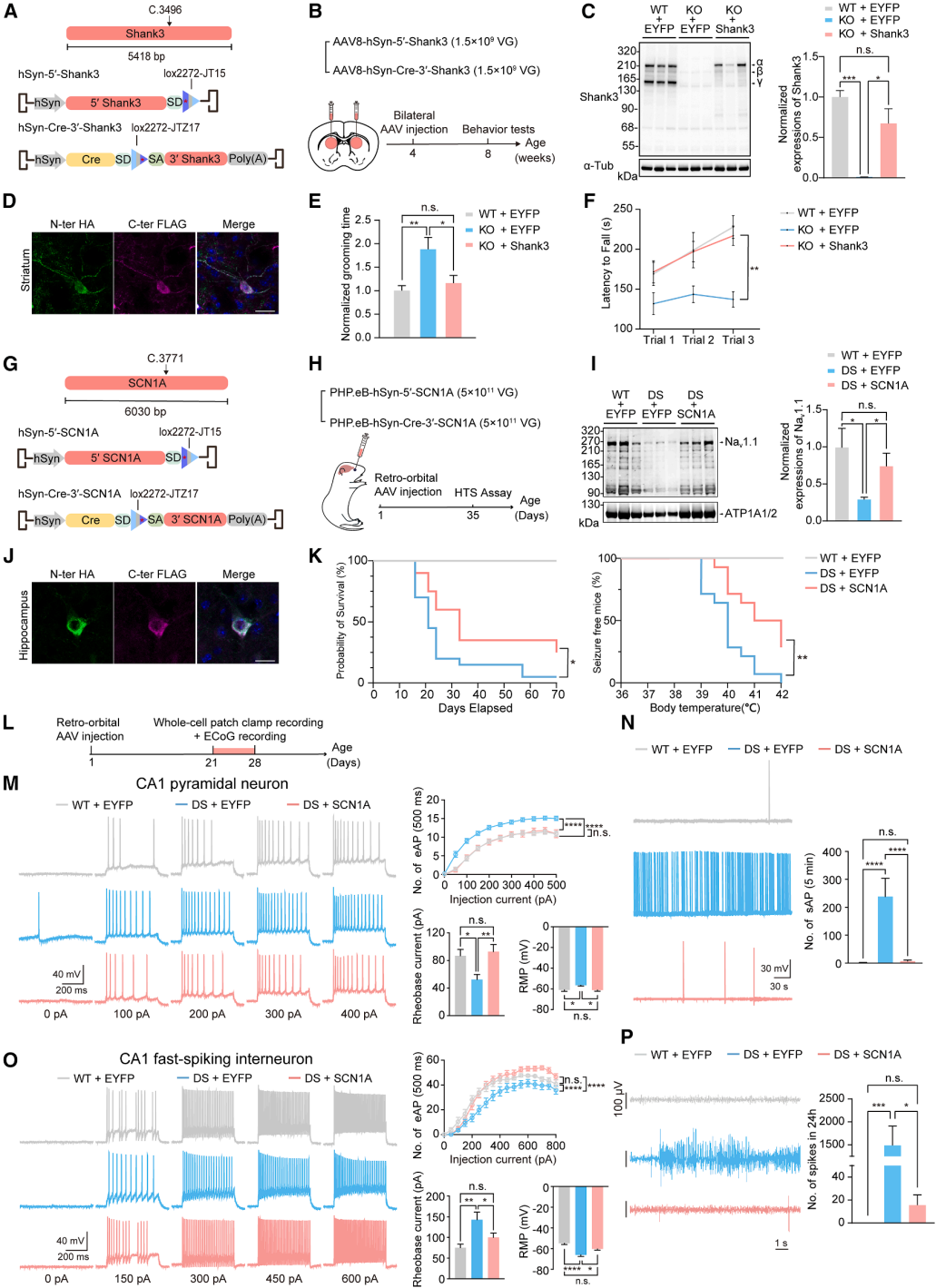 图4. AAVLINK介导的基因替代疗法在PMS和DS小鼠模型中的应用
