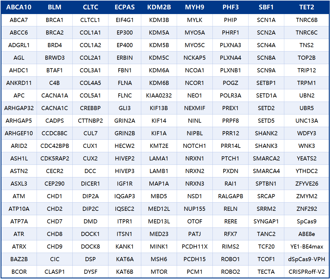 193个疾病相关大基因和5个CRISPR工具的载体库(http://AAVLINK.com/)