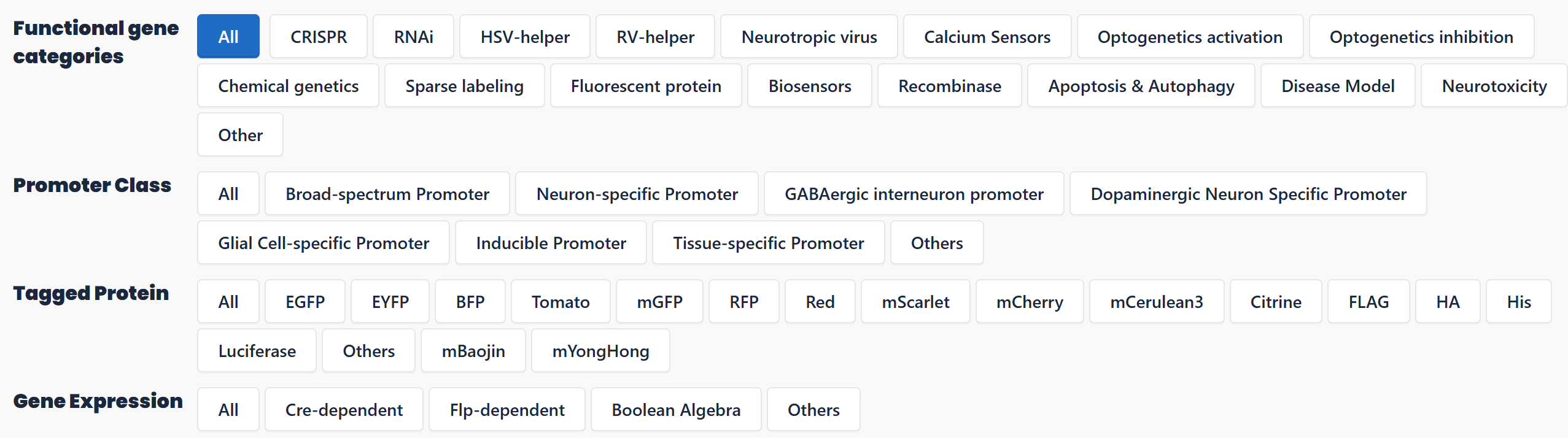 💠Viral Vector Library: 5,000+ backbones, including neural tracers (RV, PRV, HSV), recombinant AAVs & lentiviruses, and oncolytic viruses (HSV, VSV).