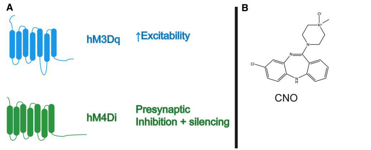 Figure 1: Common DREADDs and their ligand CNO